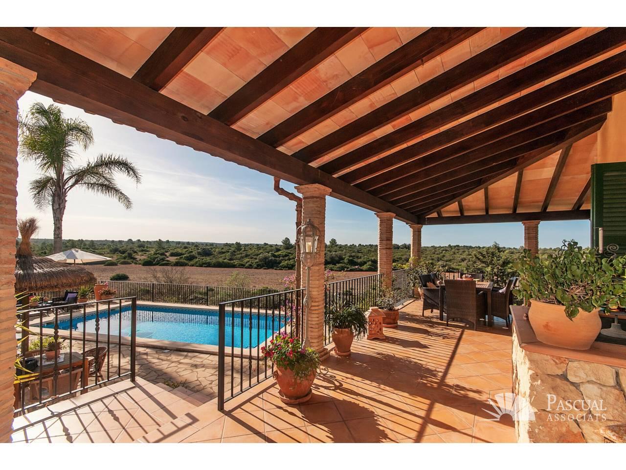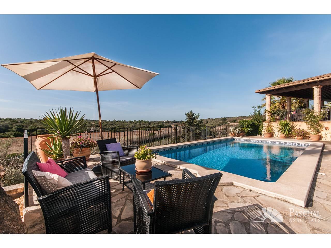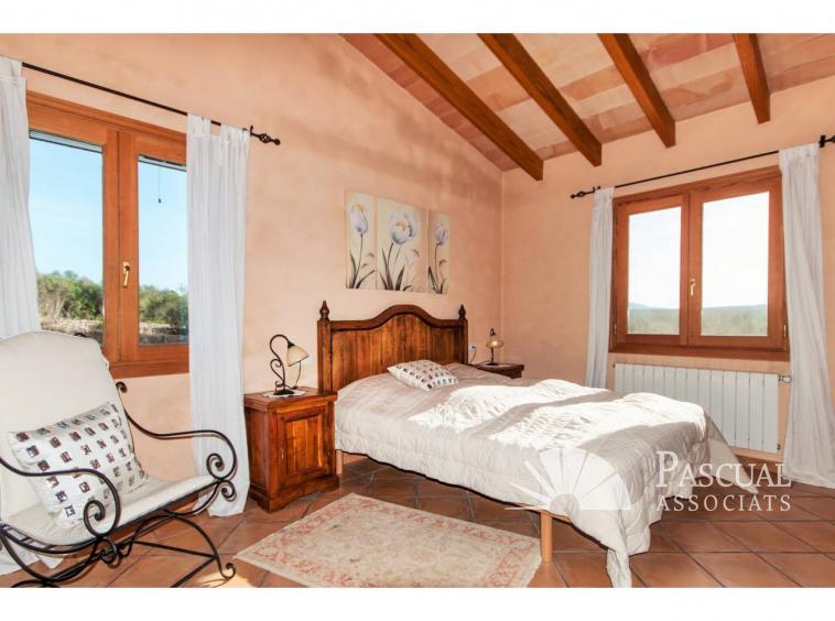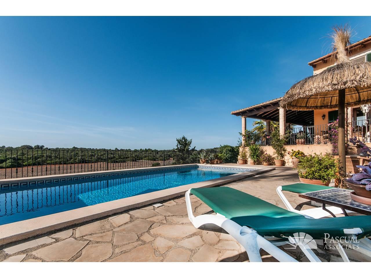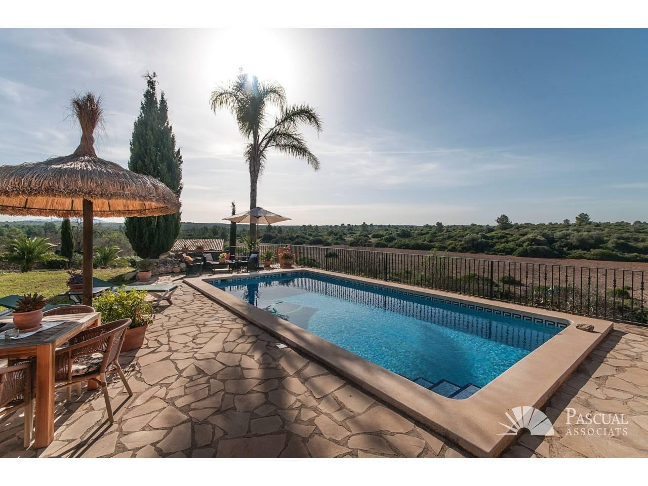 In a very quiet area of Santa Margalida we find this country house on a plot of almost 21000 m2 in total, with a well and new, automated solar installation. The house dates from 2001, and is very well maintained. The heating has been renovated, as well as the solar installation. The property has good views and a very good orientation. The house has a useful area of 220 m2. On the ground floor we have a large entrance of about 12 m2, a kitchen of 11 m2, a 47 m2 living-dining room, a laundry room, and a guest toilet. The ground floor is completed with two large porches of 22 and 19 m2 overlooking the pool. On the first floor we have 3 bedrooms, two bathrooms. The size of the property allows you to expand the house by creating a guest wing. It is a unique opportunity to buy an already built country house, avoiding all the procedures of a new property, renovate it and make it bigger. We can advise you on your project, do not hesitate to contact us. The property has a well, solar panels, and oil-fired central heating system.