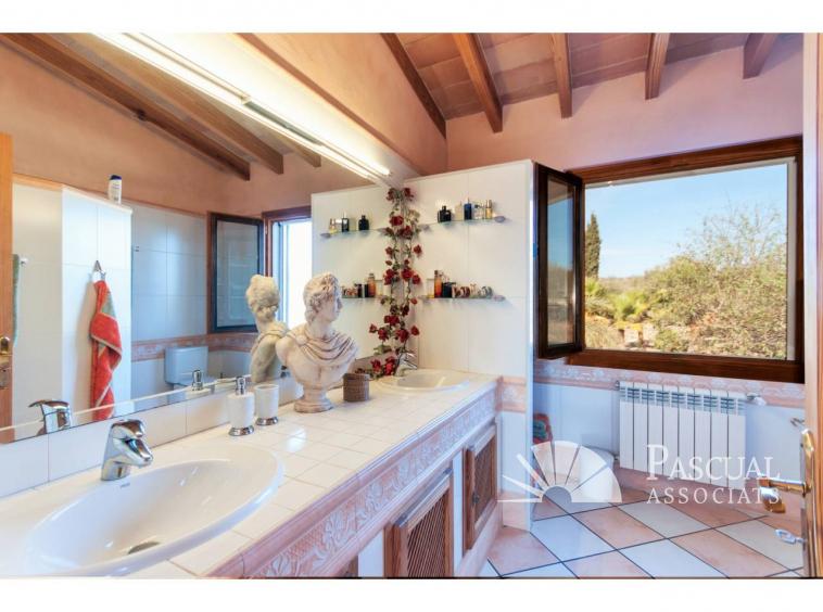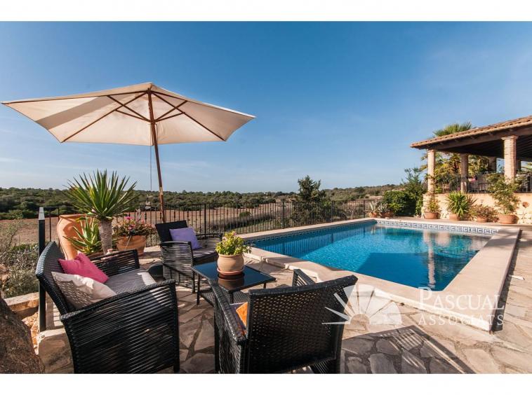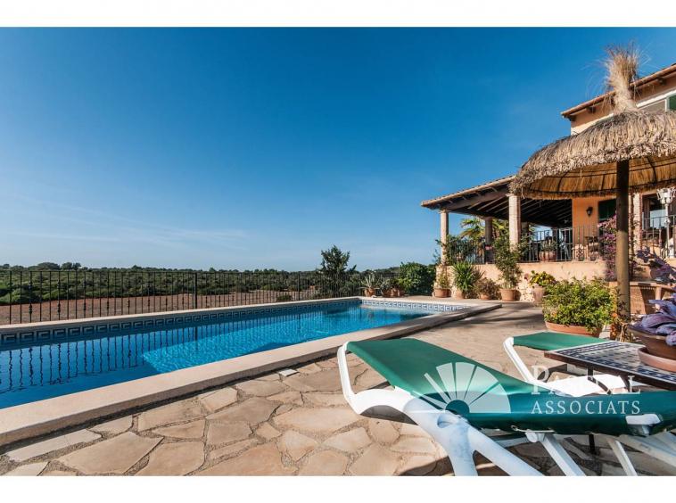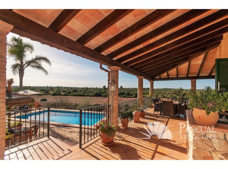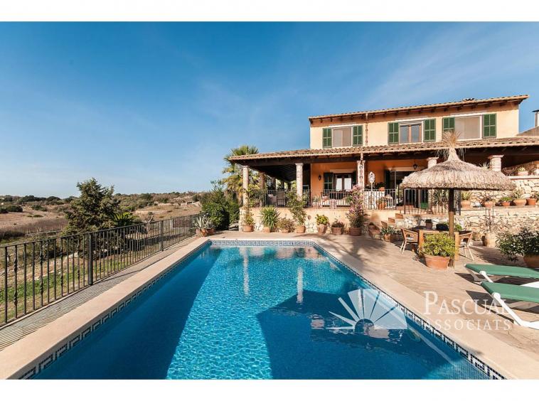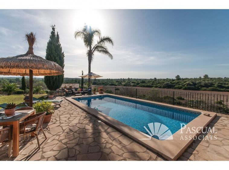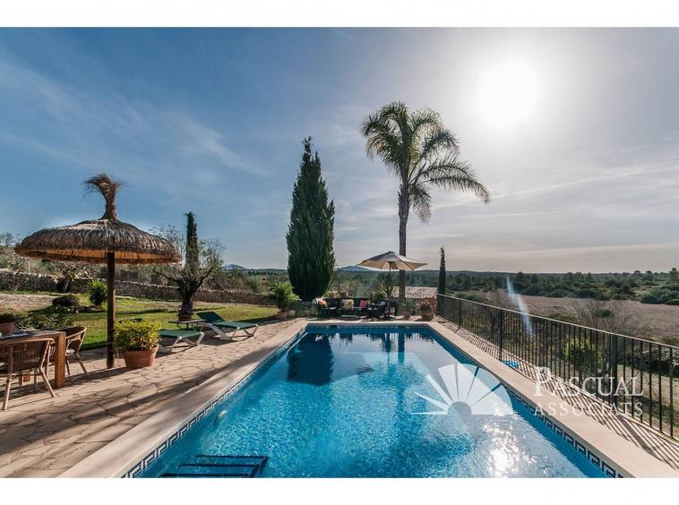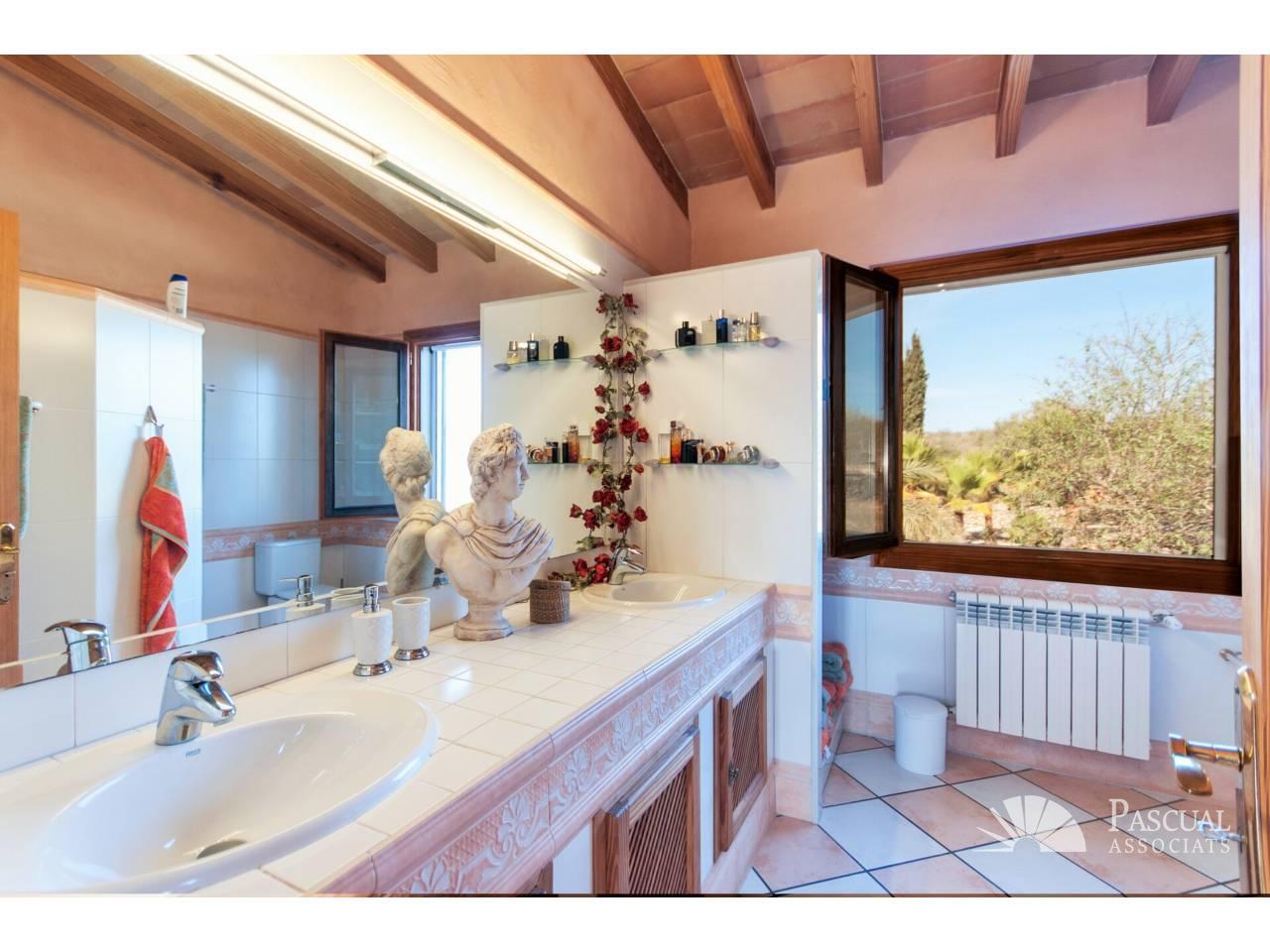 In a very quiet area of Santa Margalida we find this country house on a plot of almost 21000 m2 in total, with a well and new, automated solar installation. The house dates from 2001, and is very well maintained. The heating has been renovated, as well as the solar installation. The property has good views and a very good orientation. The house has a useful area of 220 m2. On the ground floor we have a large entrance of about 12 m2, a kitchen of 11 m2, a 47 m2 living-dining room, a laundry room, and a guest toilet. The ground floor is completed with two large porches of 22 and 19 m2 overlooking the pool. On the first floor we have 3 bedrooms, two bathrooms. The size of the property allows you to expand the house by creating a guest wing. It is a unique opportunity to buy an already built country house, avoiding all the procedures of a new property, renovate it and make it bigger. We can advise you on your project, do not hesitate to contact us. The property has a well, solar panels, and oil-fired central heating system.