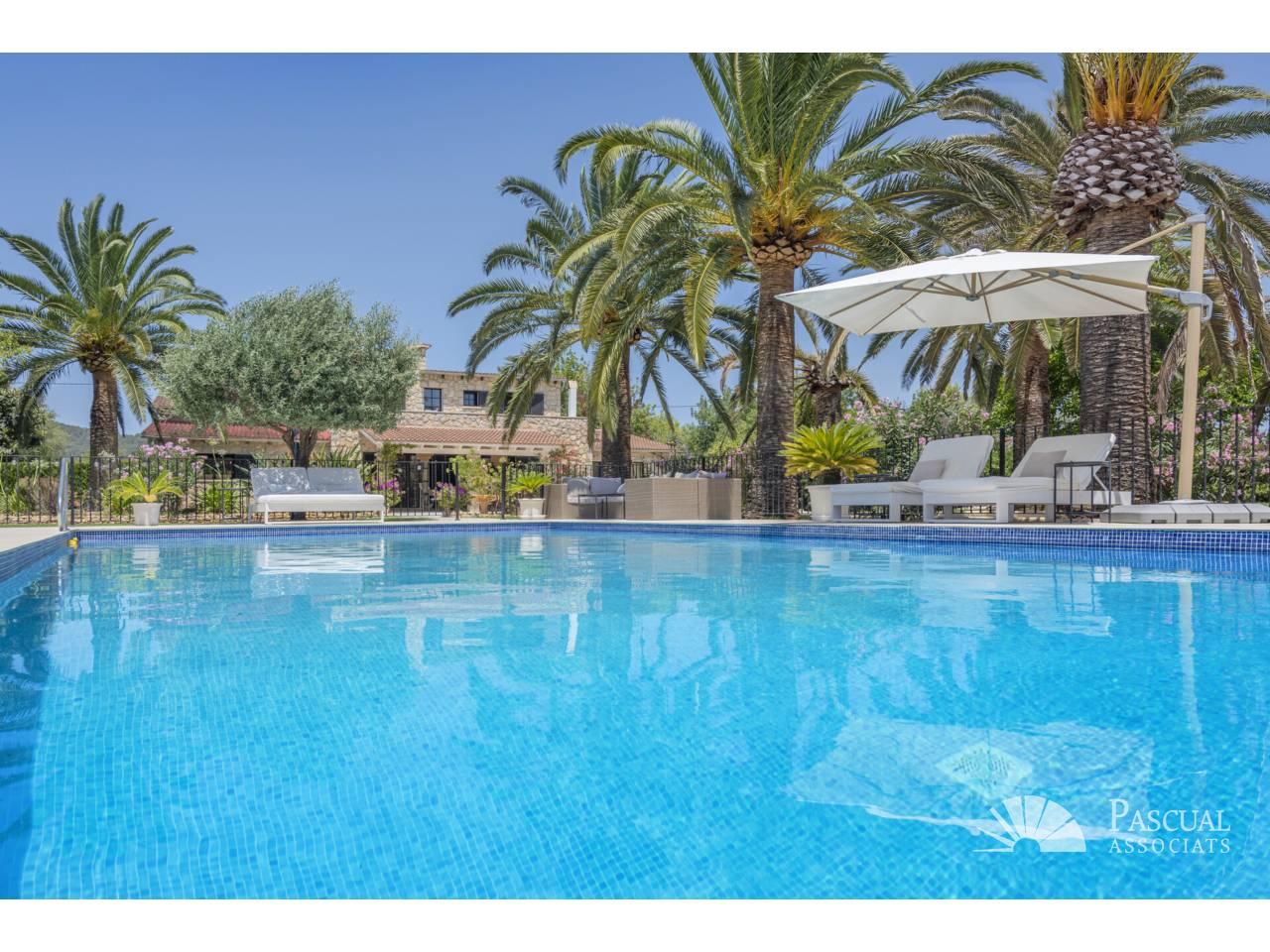 Situada a las afueras del histórico pueblo de Binissalem, en pleno corazón de la reconocida región vinícola de Mallorca, esta es una oportunidad excepcional para adquirir un refugio rural tranquilo, listo para entrar a vivir y construido con altos estándares de calidad .La propiedad ofrece 336 m² de superficie habitable, distribuidos entre la casa principal de 240 m², una casa de invitados de 42 m² y una segunda casa de invitados de 54 m². En total, la construcción alcanza 472 m², incluyendo amplias terrazas y una cocina exterior completamente equipada.