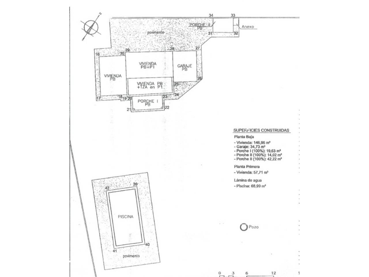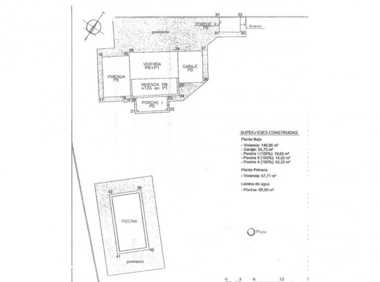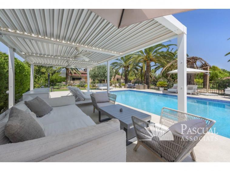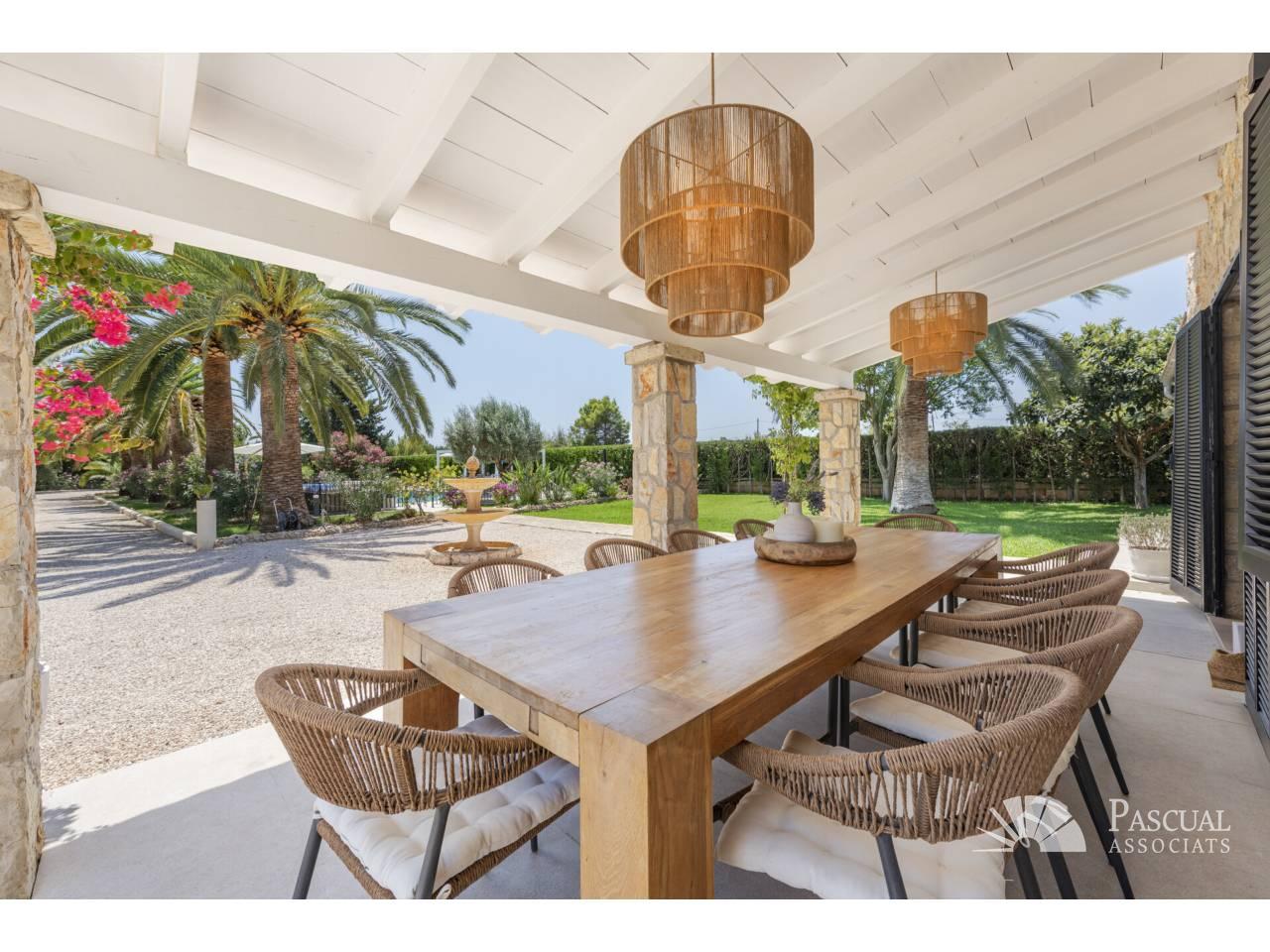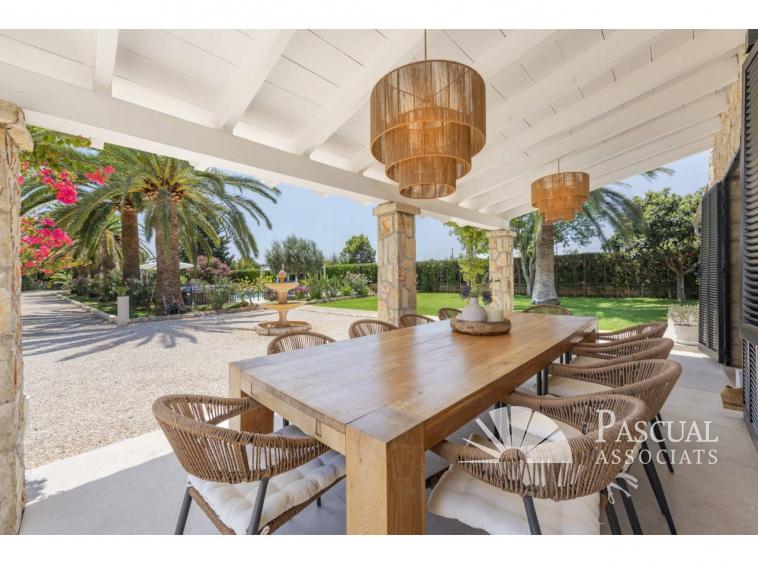 En el centro del espacio exterior se encuentra una piscina de agua salada de 12 x 6 metros, equipada con un moderno sistema de filtración. La cocina exterior, ideal para reuniones y celebraciones, cuenta con barbacoa, horno de pizza y suministro propio de agua.