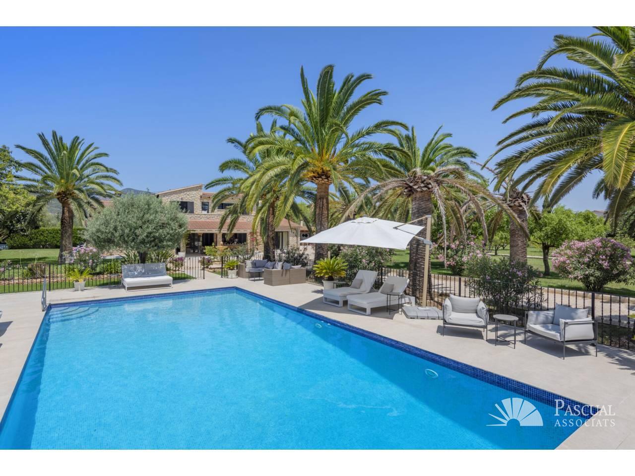 Ubicada en una parcela llana y bañada por el sol de 8.300 m², esta finca completamente renovada combina a la perfección el encanto mallorquín más auténtico con el confort moderno. La propiedad incluye dos casas de invitados exquisitamente diseñadas, una piscina de agua salada, energía solar y vistas espectaculares a la sierra de Tramuntana.