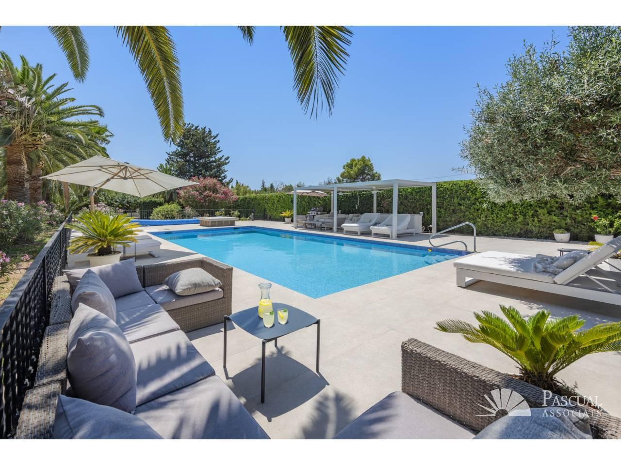 Im Zentrum des Außenbereichs befindet sich ein 12 x 6 Meter großer Salzwasserpool mit modernem Filtersystem. Die Außenküche, ideal für Zusammenkünfte und Feierlichkeiten, verfügt über einen Grill, einen Pizzaofen und eine eigene Wasserversorgung.